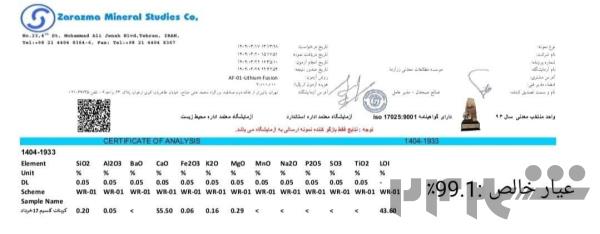 کلیه مدارک آنالیز و گواهی کیفیت موجود است.
