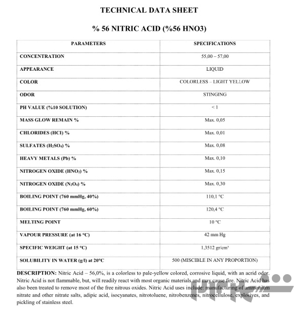 فروش عمده نیتریک اسید 56% HNO3 اسید نیتریک آلما شیمی پاسارگاد.